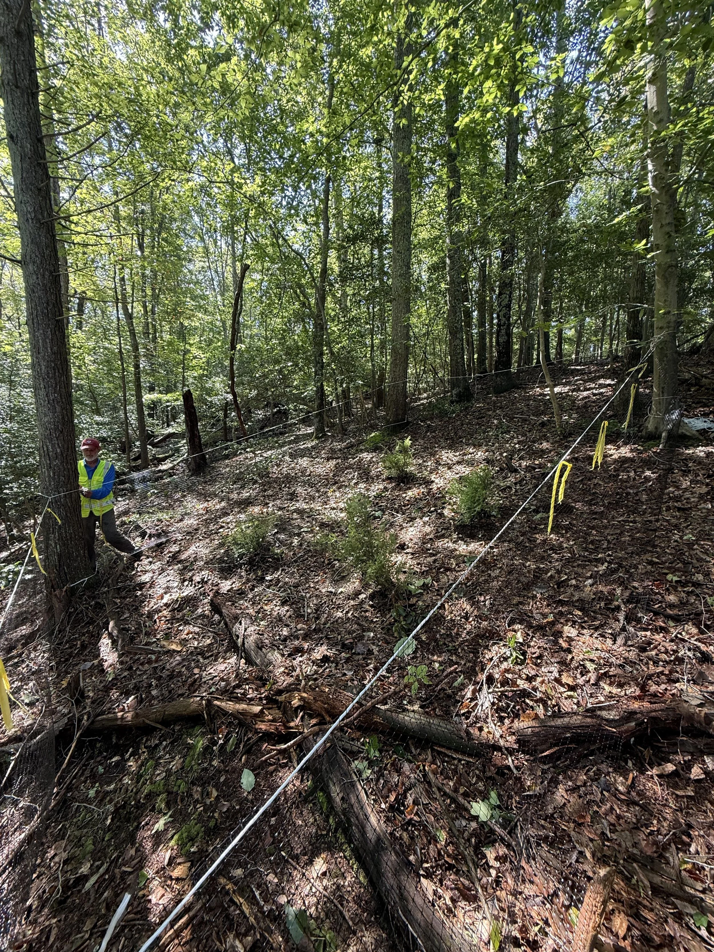 Deer fencing was placed around each transplanted Hemlock grove to prevent grazing and trampling.